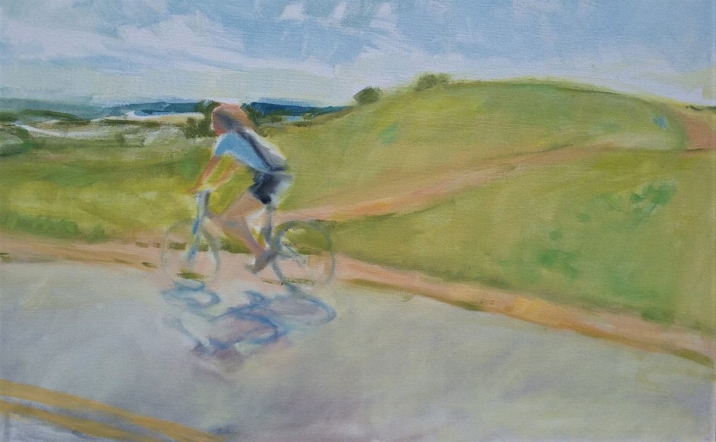 Bicyclist on Horsebarn Hill, Oil on Canvas