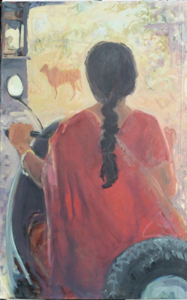 Woman on a Vespa, oil on canvas