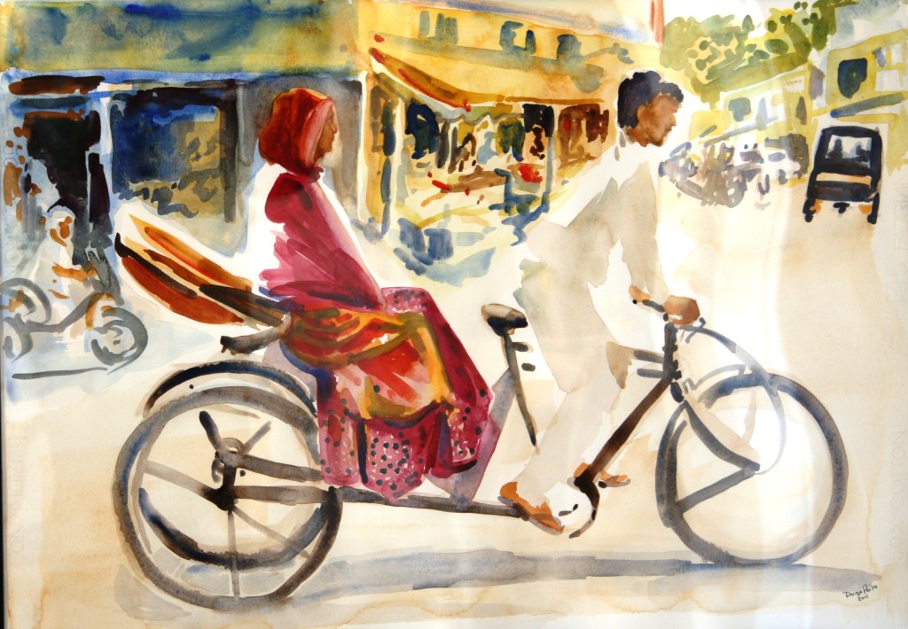 Udaipur bicycle taxi, watercolor